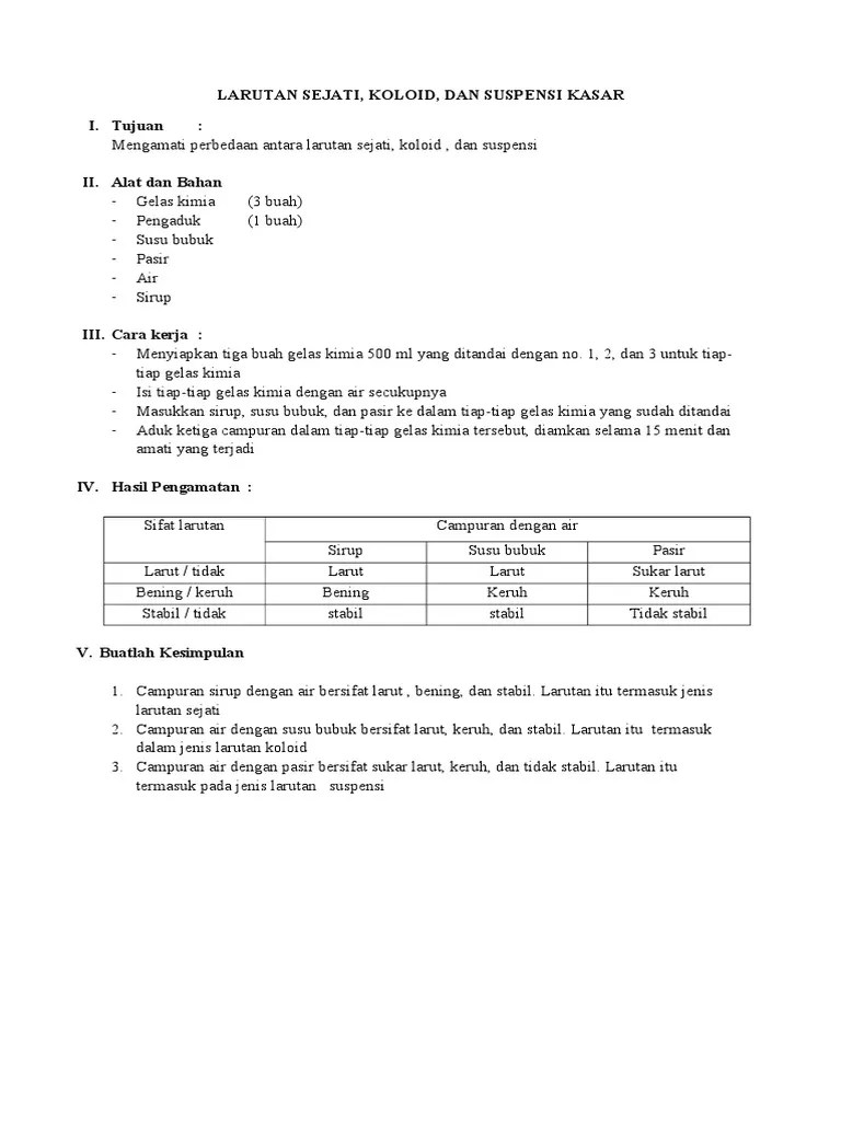 Salah satu konsep kimia tersebut yaitu sistem koloid (dwiyanti, 2001:3). Tugas kimia dasar koloid dosen pengampu : Bab i pendahuluan 1.1â latar belakang sistem koloid merupakan bentuk campuran dari dua atau lebih suatu bentuk campuran dua atau lebih zat yang bersifat . Handout berbasis kontekstual untuk pembelajaran koloid perlu diujicobakan kepada peserta didik kelas xi sma/ma untuk mengetahui sejauh mana kelebihan dan . Puji syukur kami panjatkan kehadirat tuhan yang maha esa .
